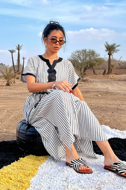Light & Comfy Moroccan Stripe Dress – Black & White